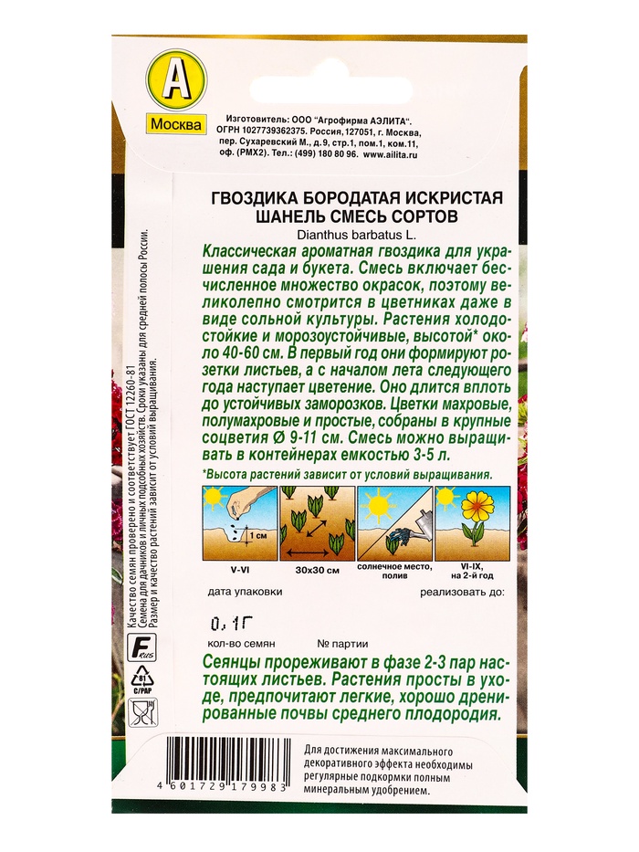 Семена цветов Гвоздика Искристая Шанель, смесь сортов Дв Золотая серия, Ц/П,0,1 г