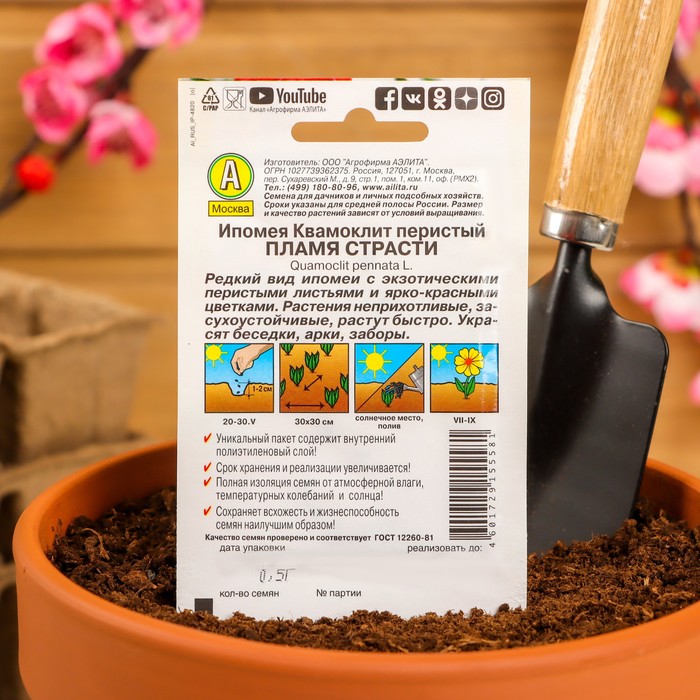 Технические характеристики Семена Цветов Ипомея "Квамоклит Пламя страсти", 15 шт