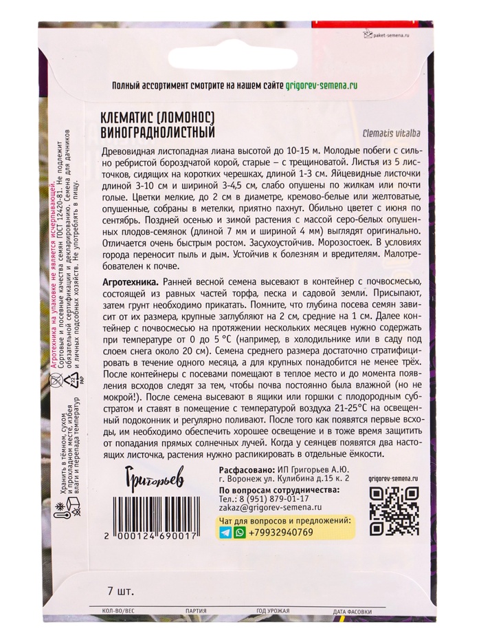 Семена цветов Клематис Винограднолистный 7 шт. 12.29 г.