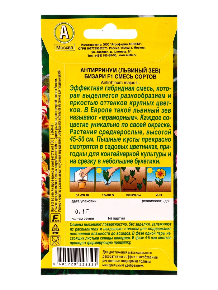Семена цветов Львиный зев Бизари F1, смесь сортов , Ц/П,0,1 г