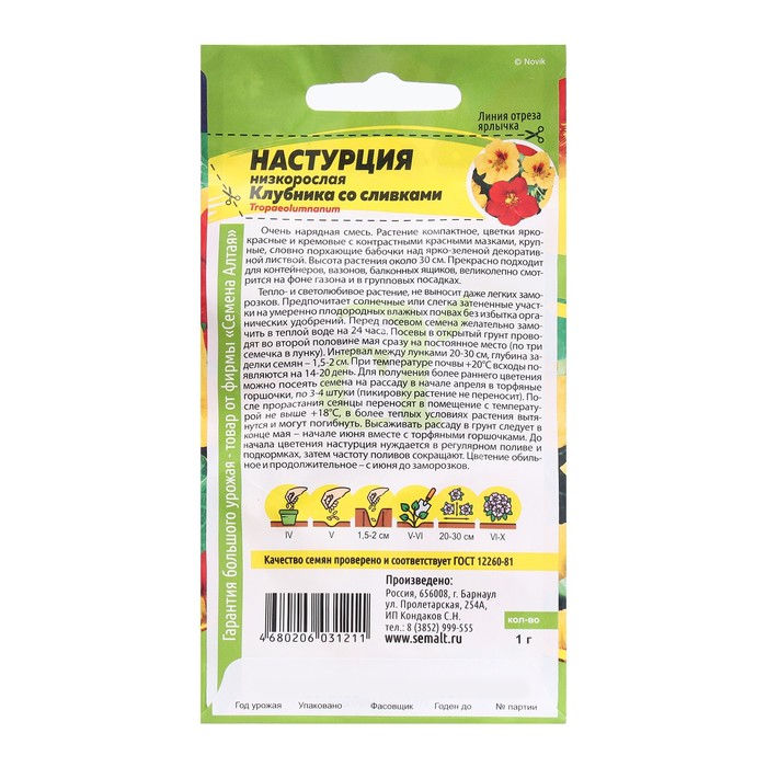 Семена цветов Настурция Клубника со сливками низкорослая, О, цп, 1 г продажа, цена в Минске