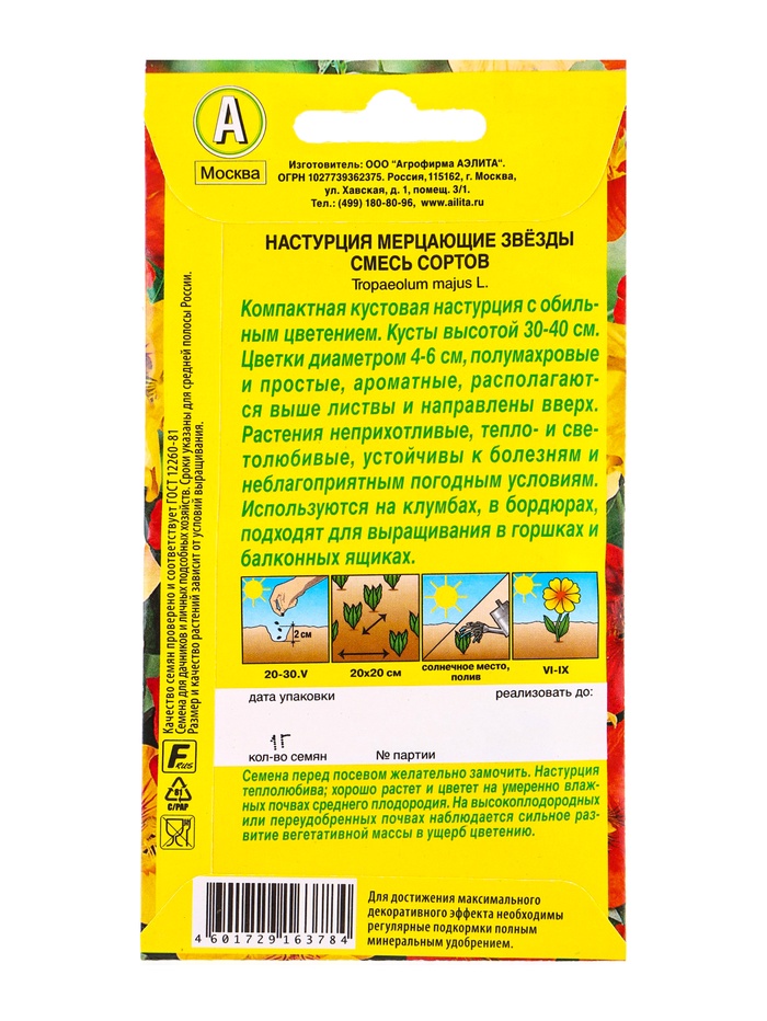 Семена цветов Настурция махровая Мерцающие звезды, смесь сортов , Ц/П,1 г