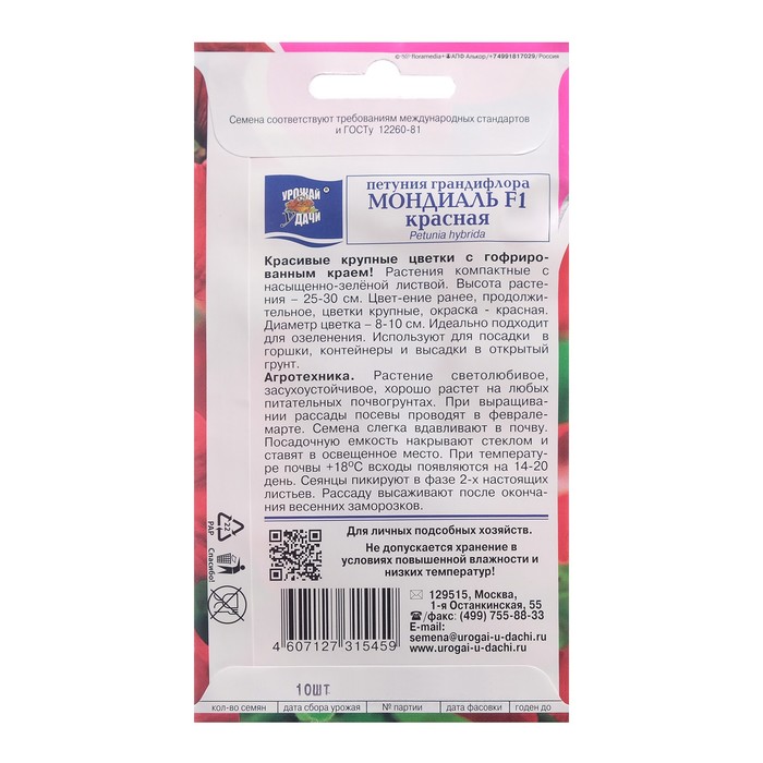 Семена цветов Петуния крупноцветковая "МОНДИАЛЬ Красная F1", 10 шт. в амп.