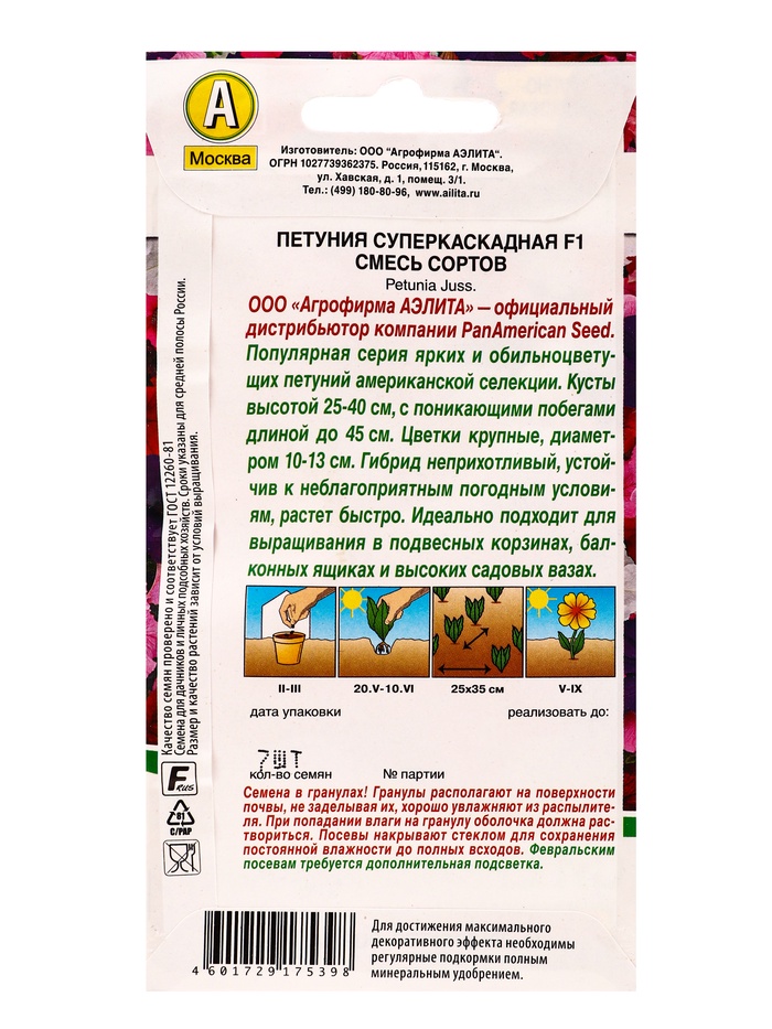 Семена цветов Петуния Суперкаскадная F1, смесь сортов (драже) PanAmerican, Ц/П,7 шт.