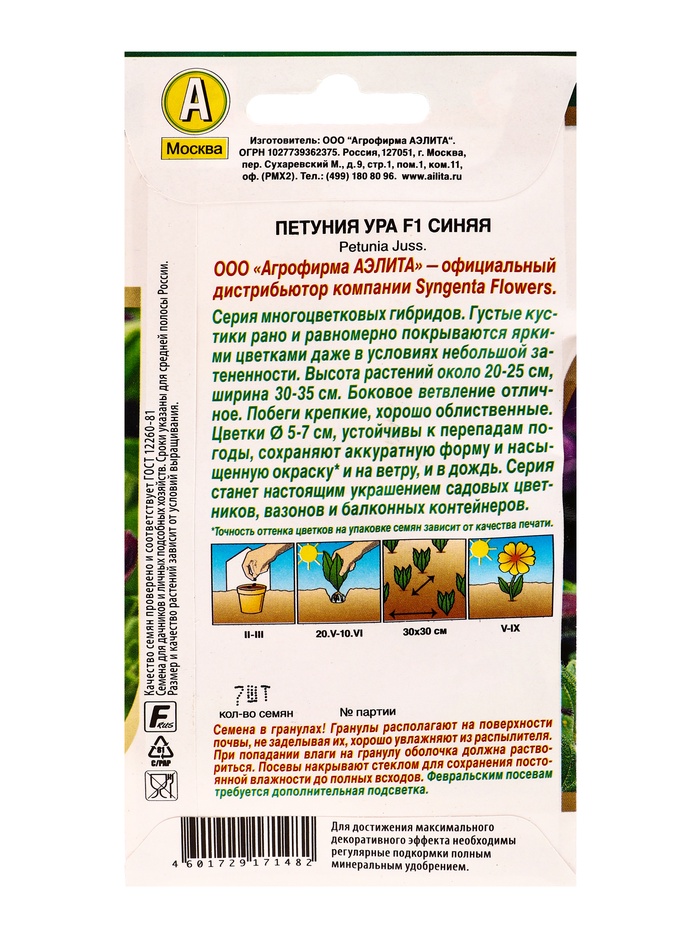 Семена цветов Петуния Ура F1 синяя (драже в пробирке) Спецсерия Syngenta, Ц/П,7 шт.