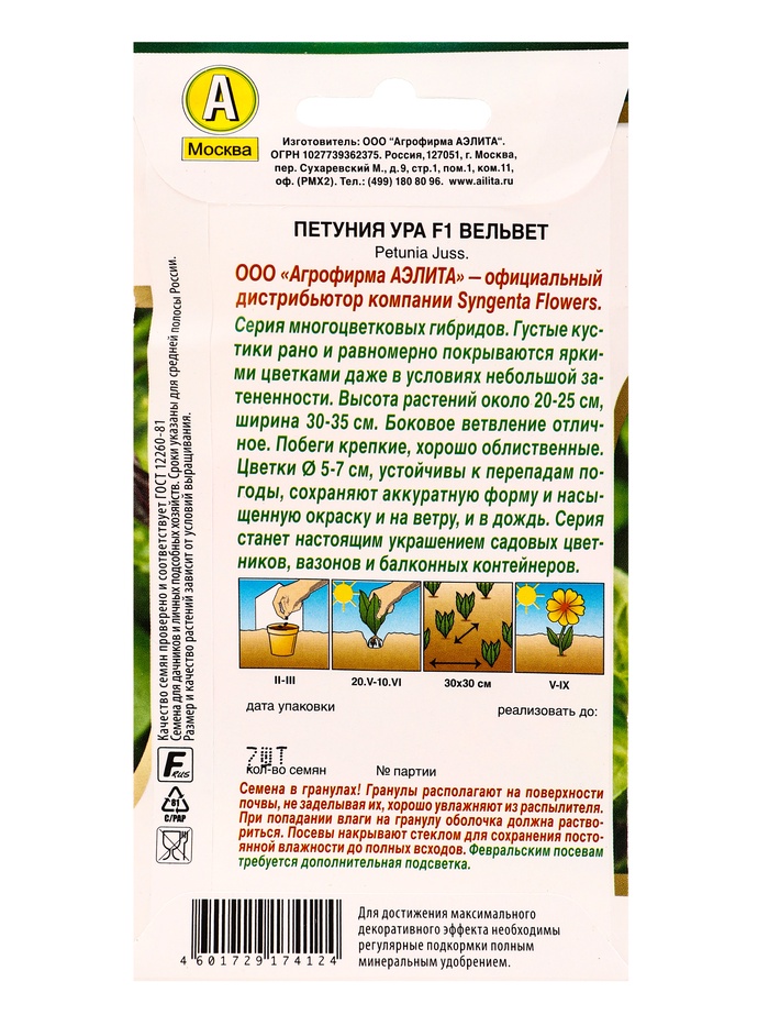 Семена цветов Петуния Ура F1 вельвет (драже в пробирке) Спецсерия Syngenta, Ц/П,7 шт.
