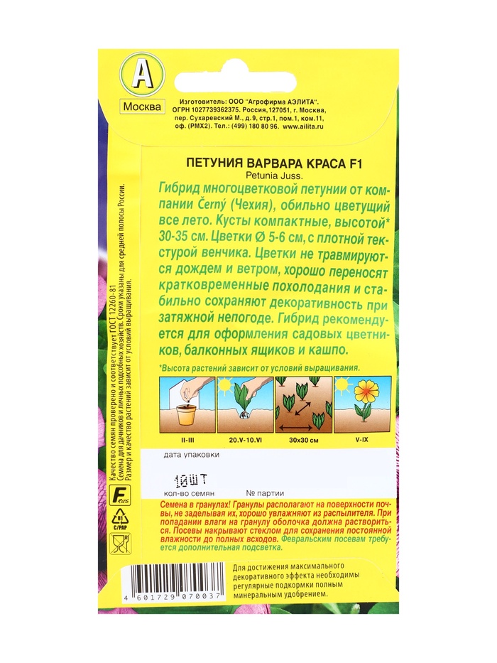 | Вид | Петуния; Семечки |