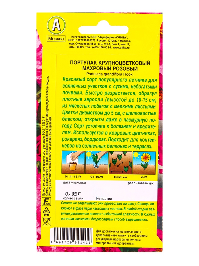 Семена цветов Портулак махровый розовый , Ц/П,0,05 г