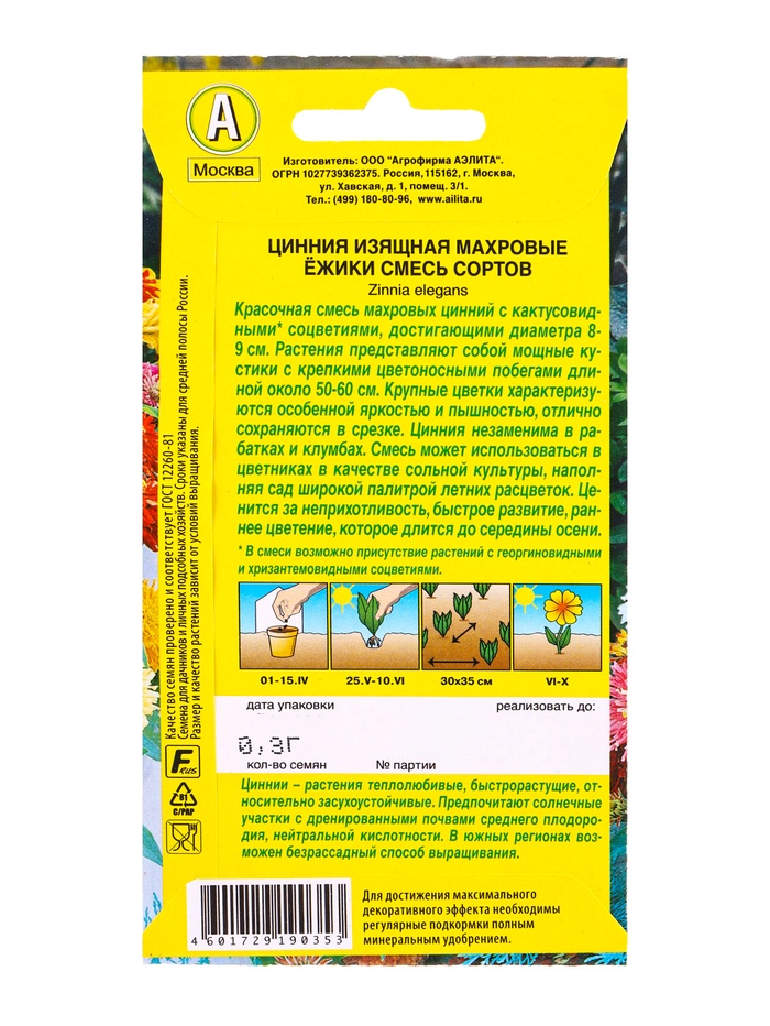 Семена цветов Цинния Махровые ёжики, смесь сортов , Ц/П,0,3 г