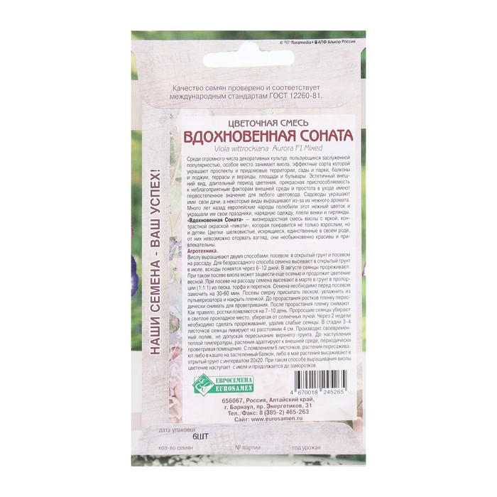 Семена Цветов Цветочная смесь Вдохновенная Соната, 6 шт