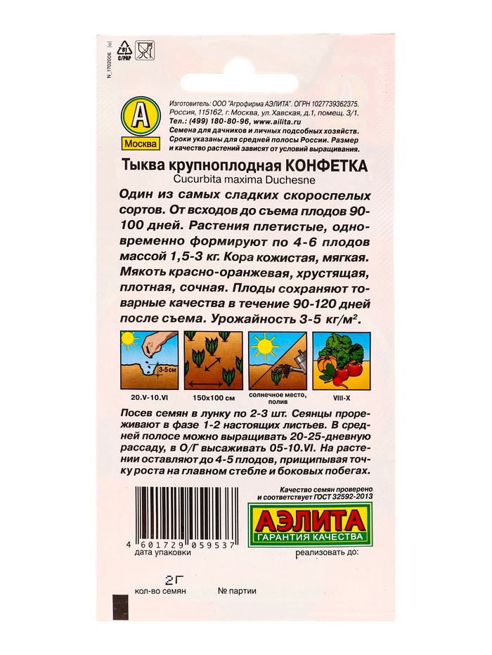 Семена Тыква крупноплая Конфетка, Ц/П,2 г
