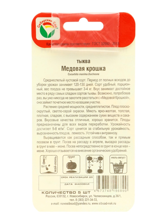 Технические характеристики Семена Тыква "Медовая крошка", набор 5 шт