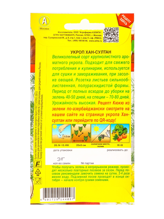 Семена Укроп Хан-Султан Блюда стран мира, Ц/П,3 г