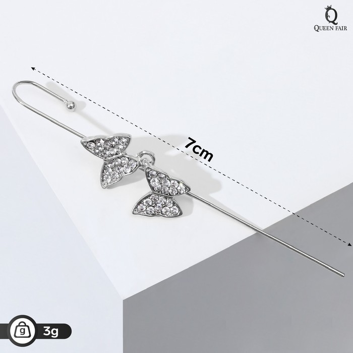 Серьга «Кафф» бабочки, насквозь, цвет белый в серебре