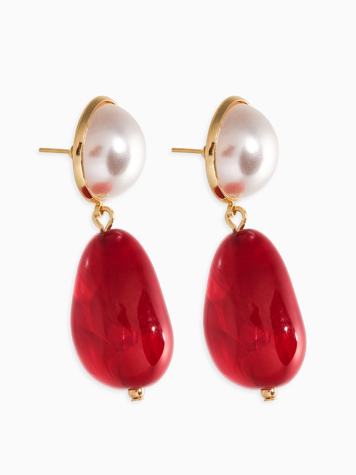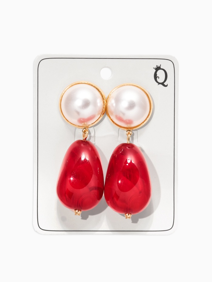 Технические характеристики Серьги акрил с жемчугом "Капля", цвет бордово-белый в золоте