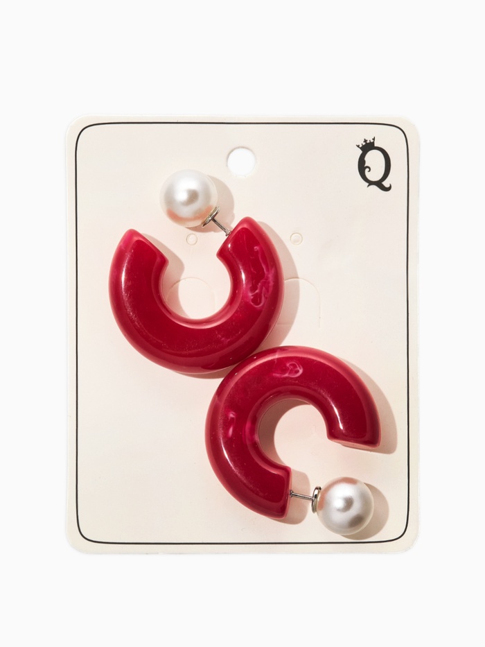 Серьги акрил «Полукольцо с бусиной №10», бордовые