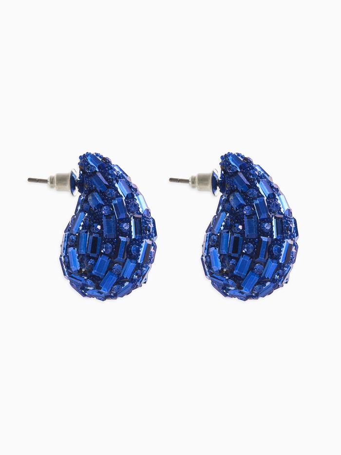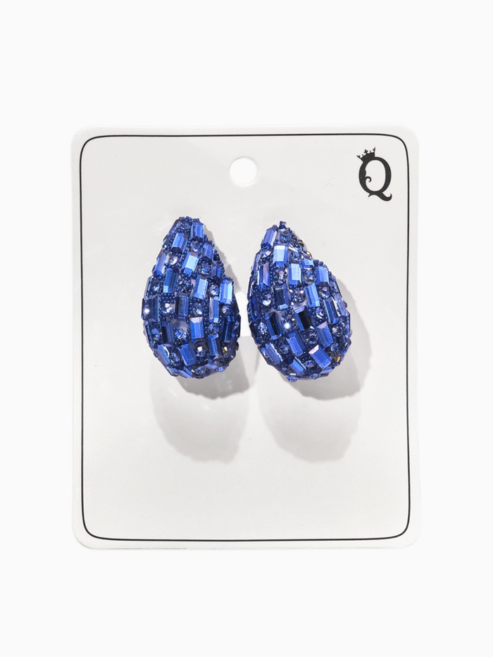 Серьги со стразами «Блеск» капля, цвет синий