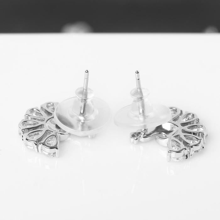 Серьги со стразами «Павлин» роскошь, цвет белый в серебре