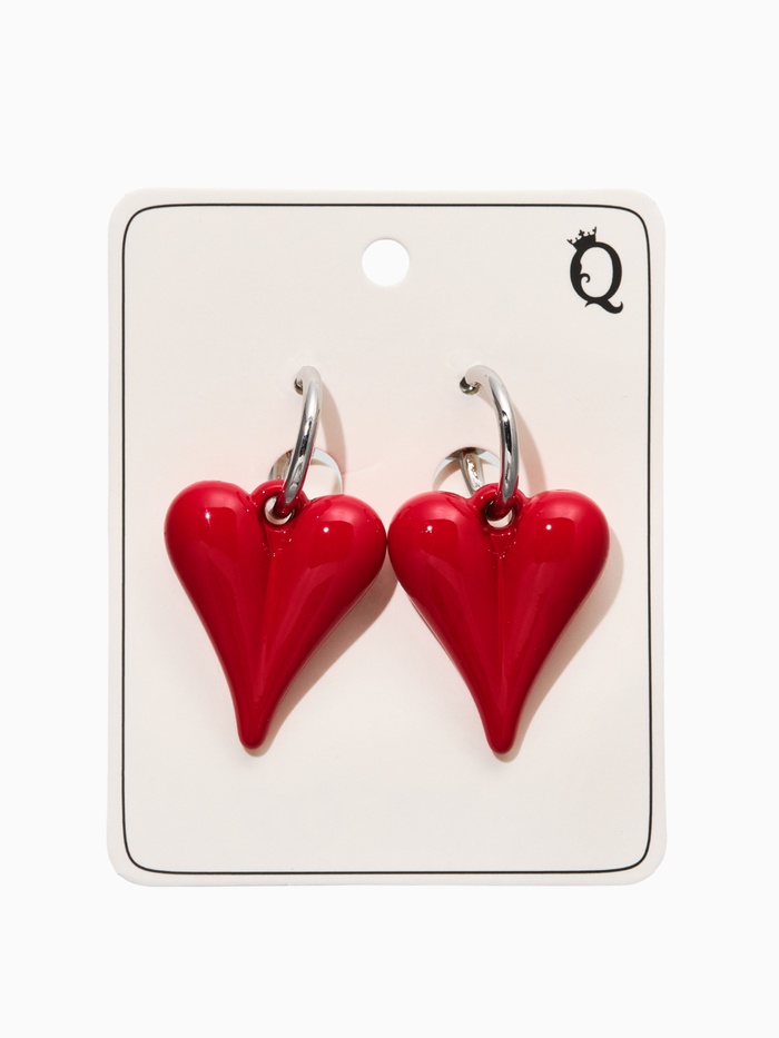 Серьги со съёмными подвесками «Сердца вытянутые», красные в серебре