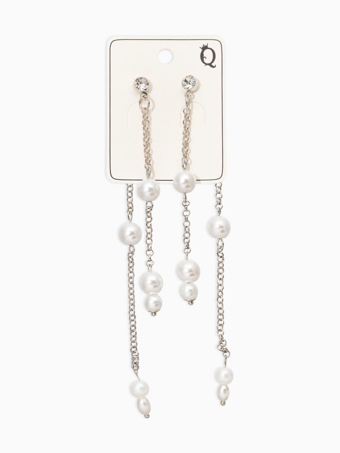 Серьги висячие «Жемчужные капли», белые в серебре