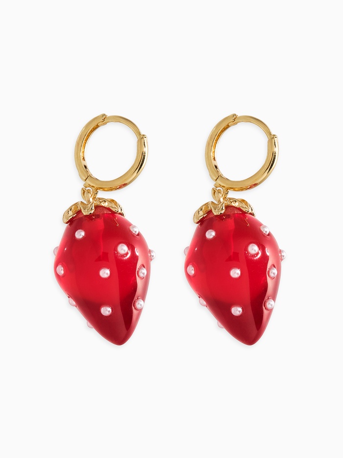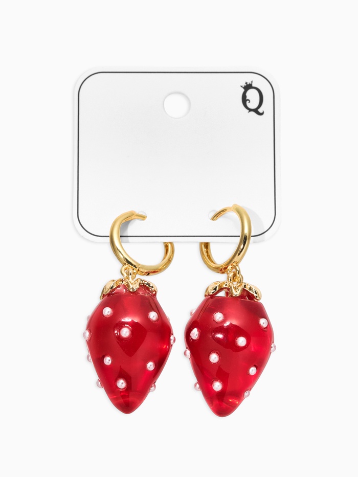 Серьги "Клубничка на кольце" в крапинку, цвет красный в золоте