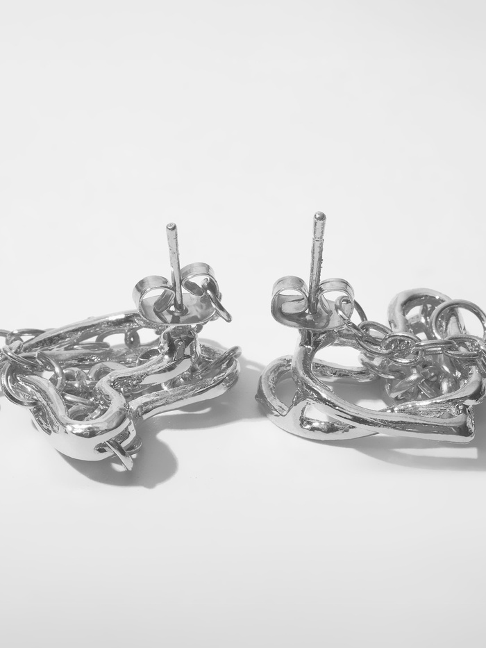 Серьги металл «Сердце» в цепях, цвет серебро