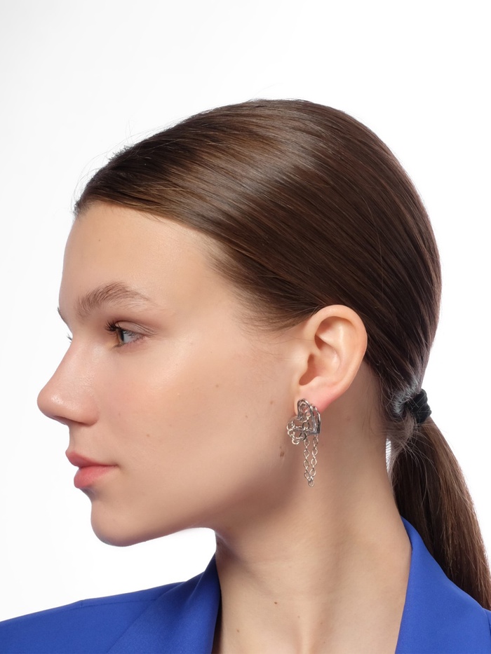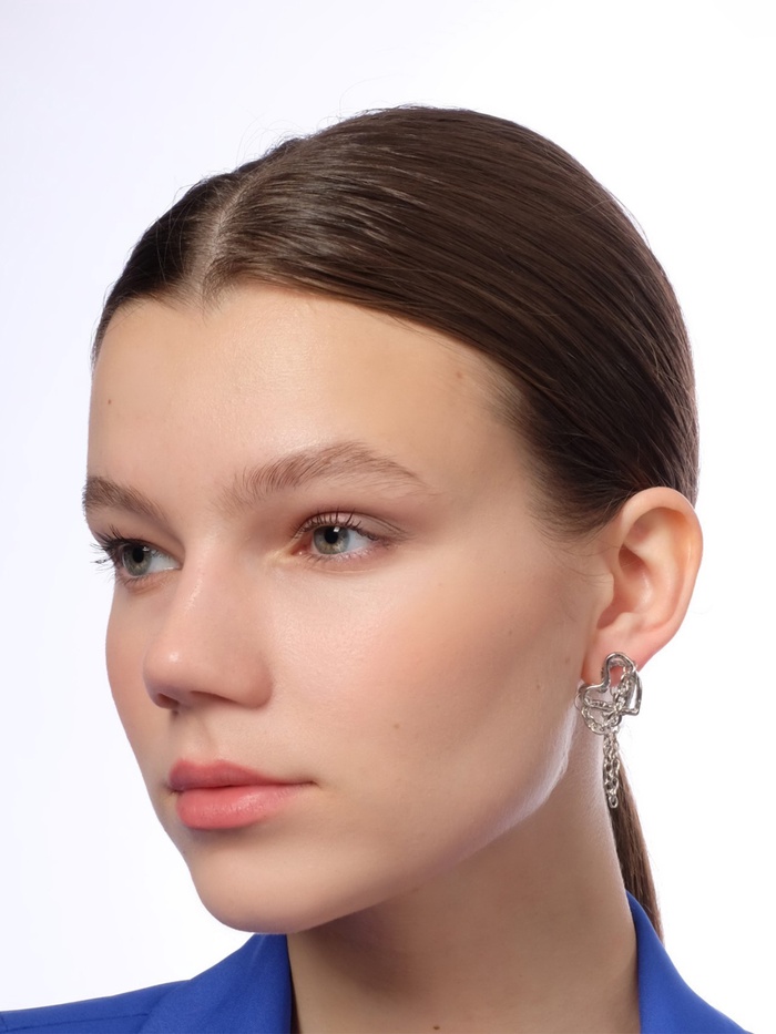 Элегантные серьги в форме сердца с цепями привнесут нотку оригинальности в ваш образ. Их серебристый цвет и стильный дизайн делают это украшение идеальным выбором для женщин, которые хотят подчеркнуть свою индивидуальность и выразить свои чувства.