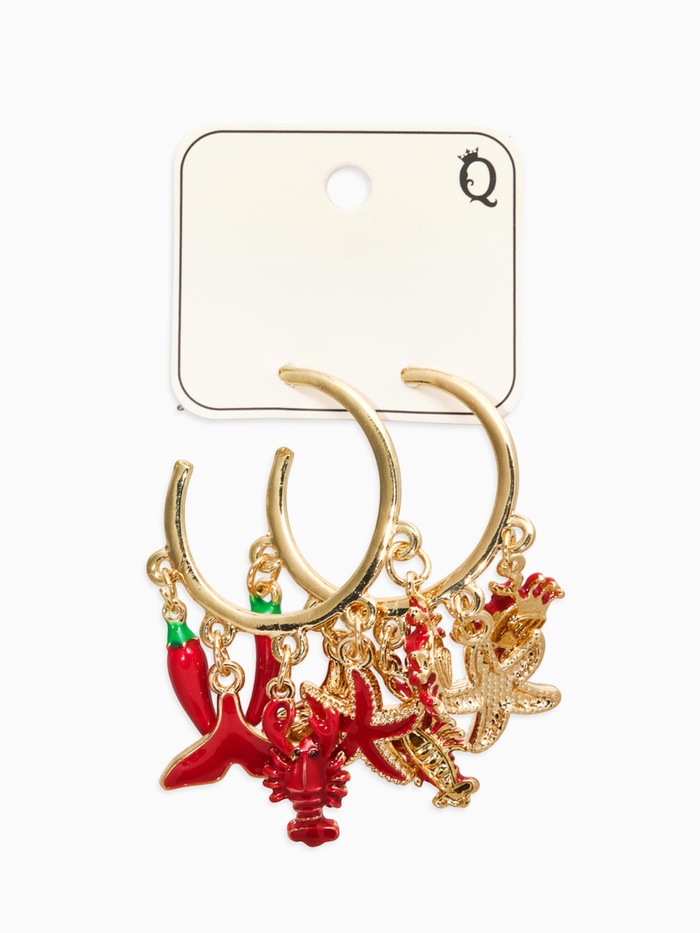 Серьги "Морской мир", микс подвесок, цвет красный в золоте