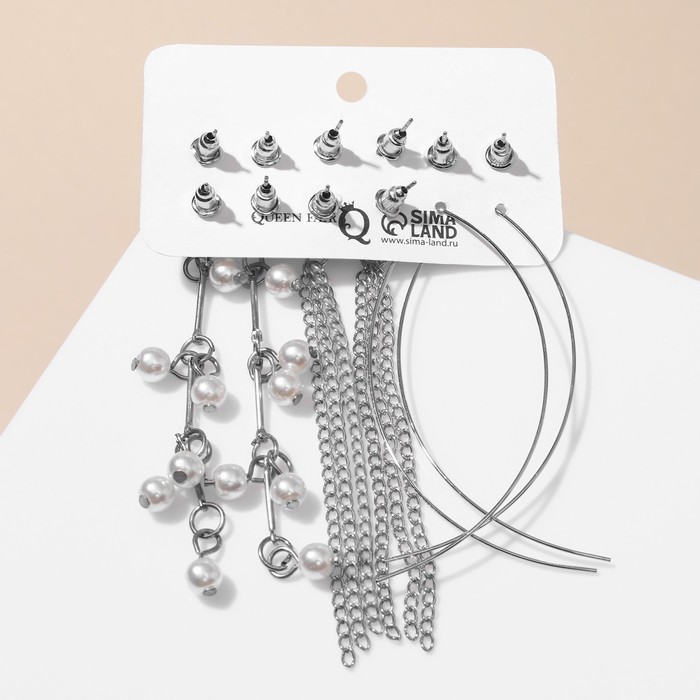 Технические характеристики Серьги набор 6 пар «Жемчужные» весна, цвет белый в серебре