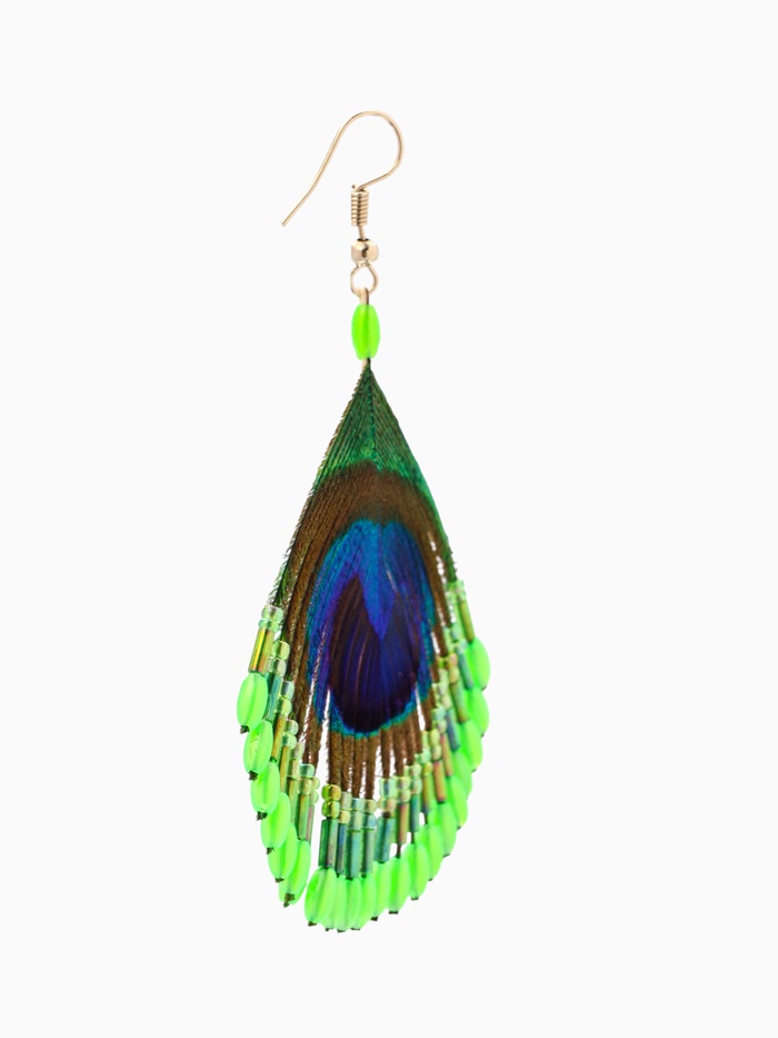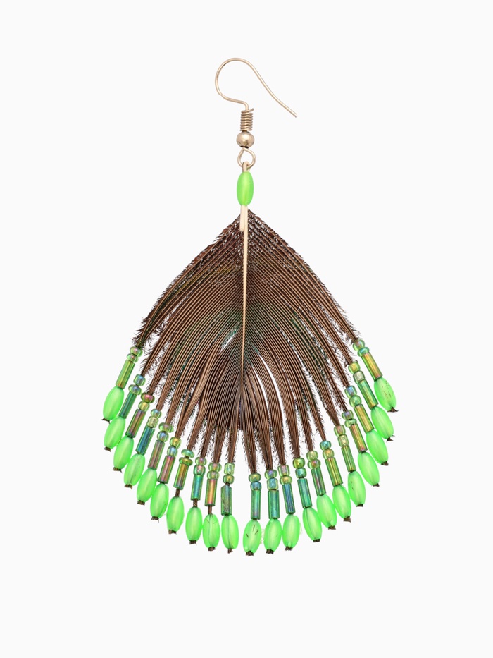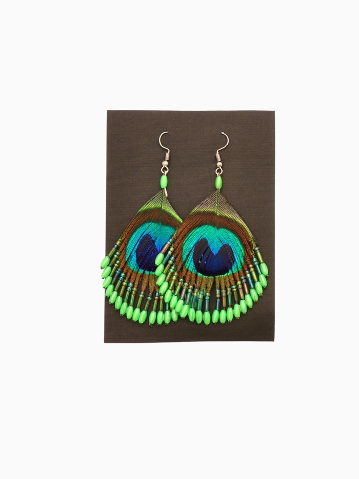 Серьги «Павлин», 5×8 см, зелёные