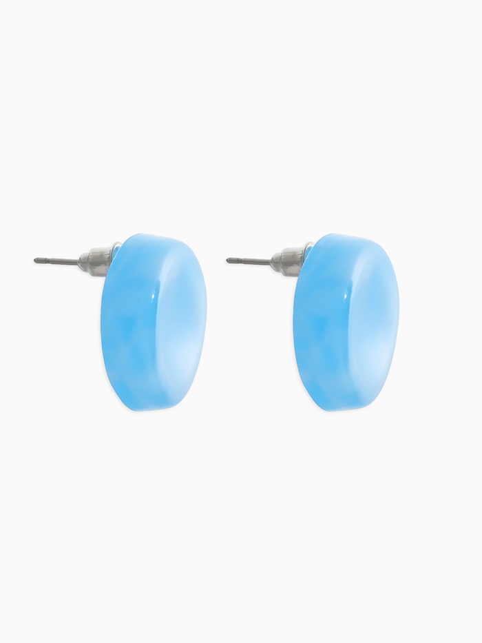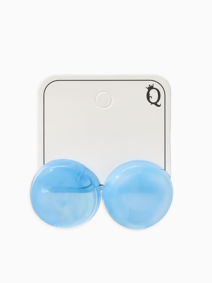 Серьги пластик "Леденец" круг 2 см с разводами белыми, цвет голубой