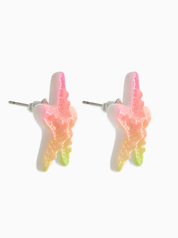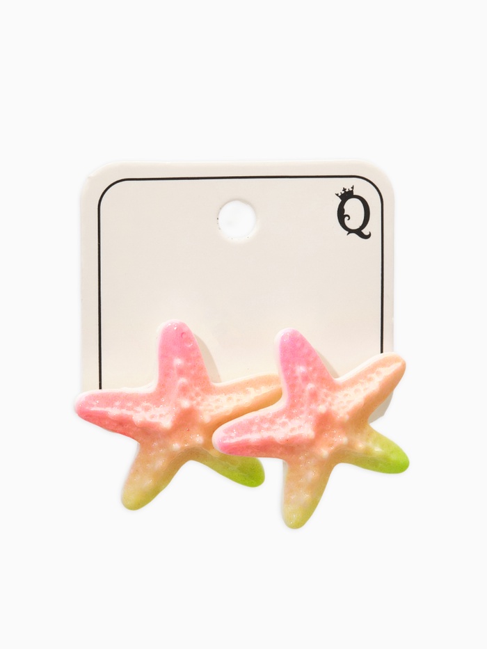 Серьги пластик "Морская звезда", цвет розово-зелёный