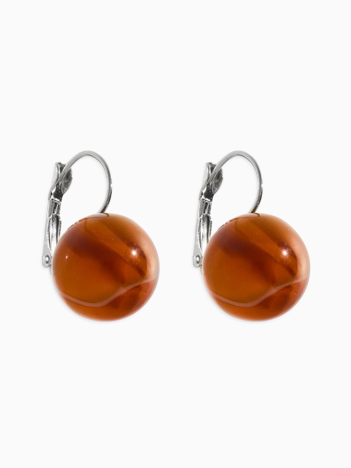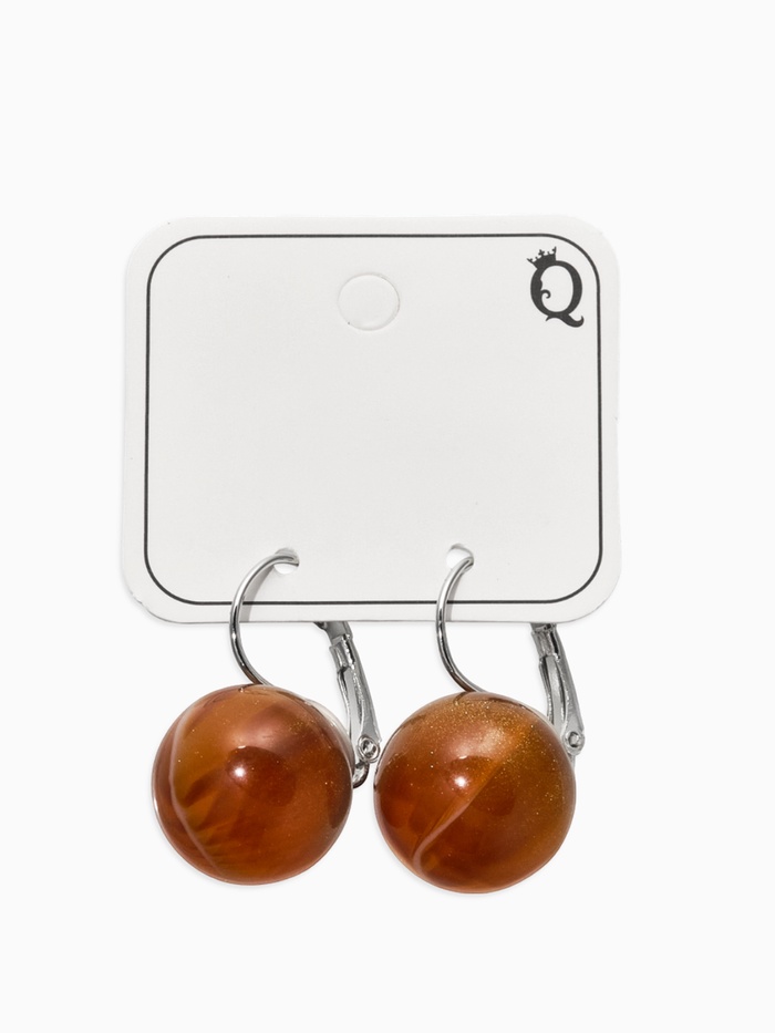 Серьги пластик «Шар №16», с разводами и блёстками, светло-коричневые в серебре