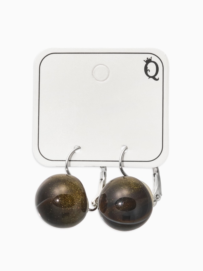 Серьги пластик «Шар №16», с разводами и блёстками, цвет чёрно-золотой в серебре