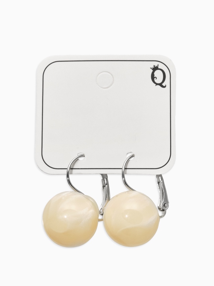 Серьги пластик «Шар №16», с разводами и блёстками, цвет молочный в серебре