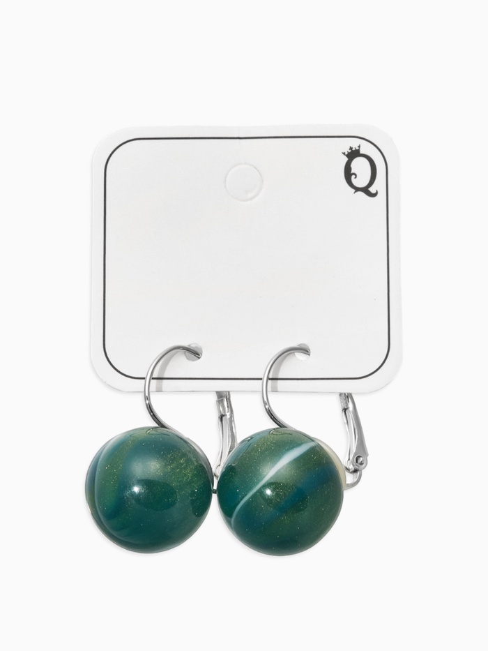 Серьги пластик «Шар №16», с разводами и блёстками, зеленый в серебре