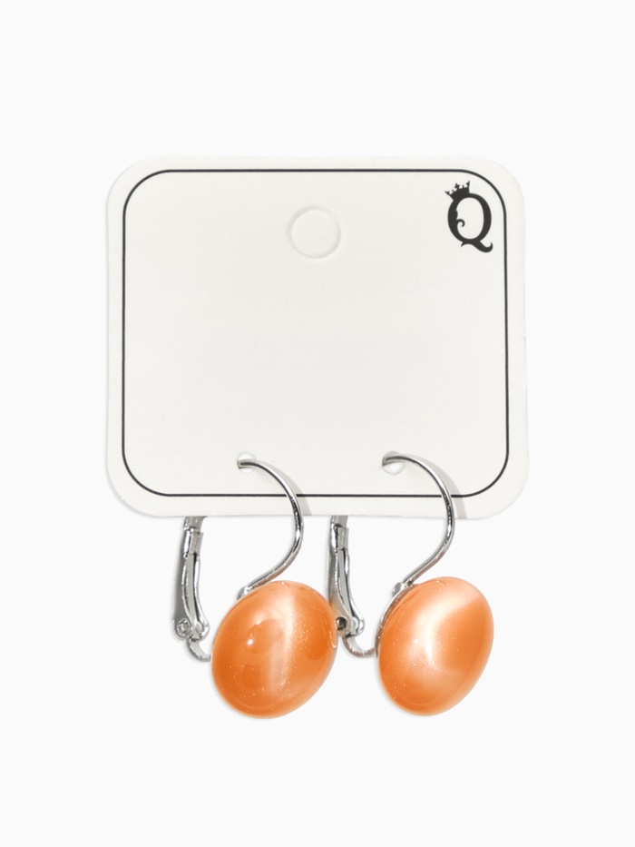 Серьги пластик "Таблетка" кошачий глаз, цвет оранжевый в серебре