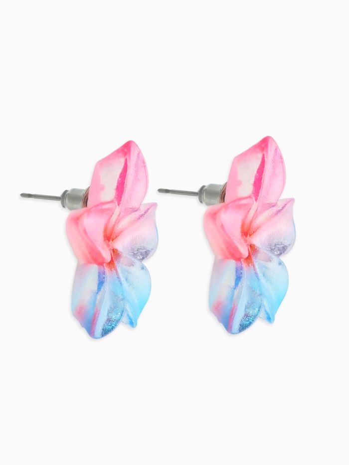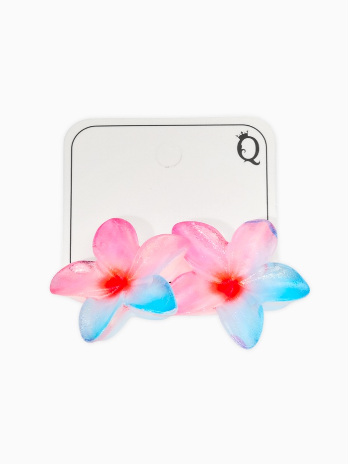 Серьги пластик "Цветок Лилии" прозрачные, блёстка, цвет розово-голубой