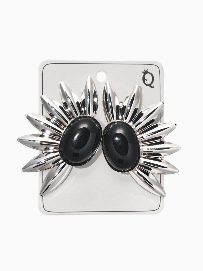 Серьги "Полусолнце", цвет чёрный в серебре