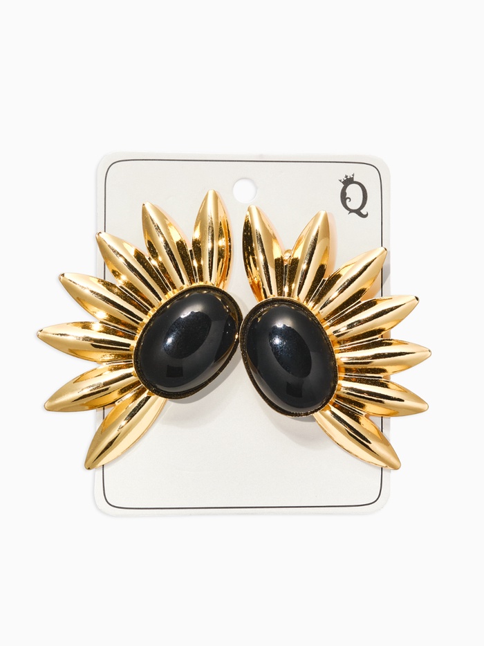 Серьги "Полусолнце", цвет чёрный в золоте