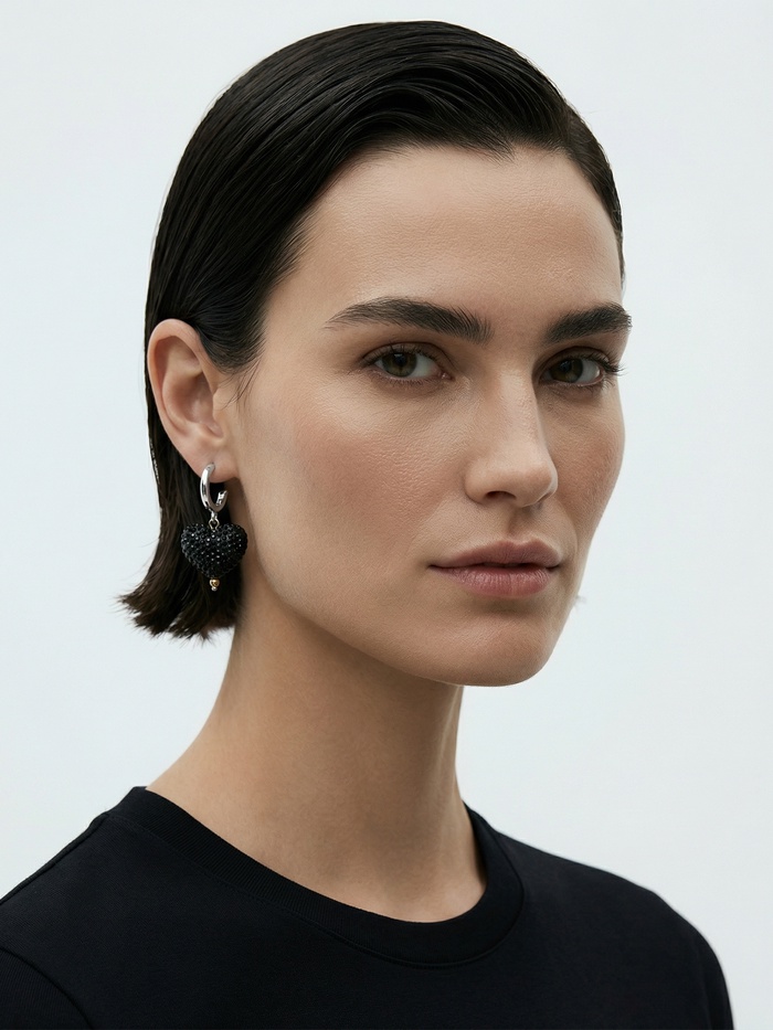 Технические характеристики Серьги с подвесками «Сияние вечера» сердце, чёрные в серебре
