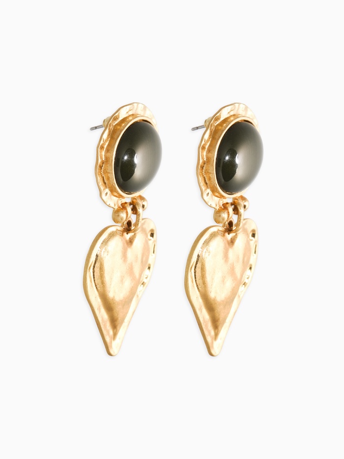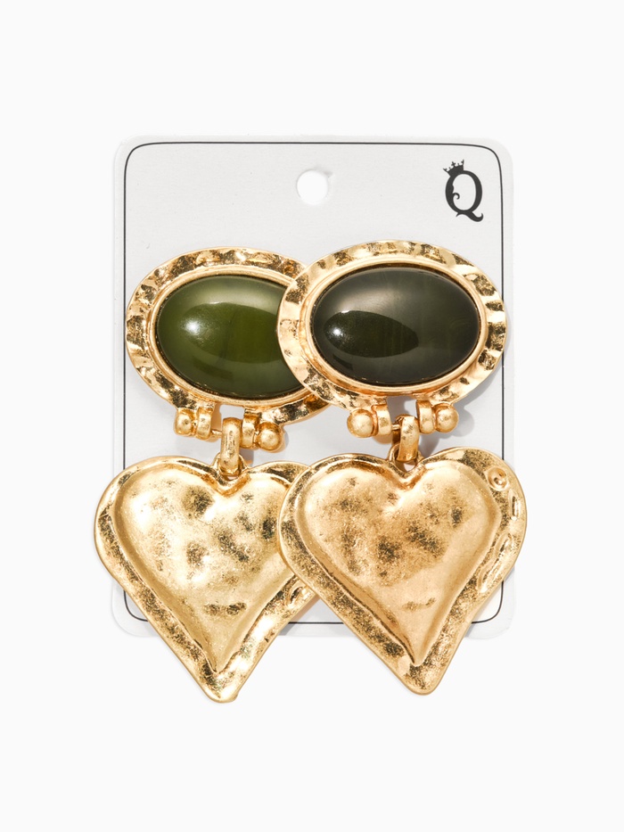 Серьги "Винтаж", овал с сердцем, цвет темно-зелёный в золоте