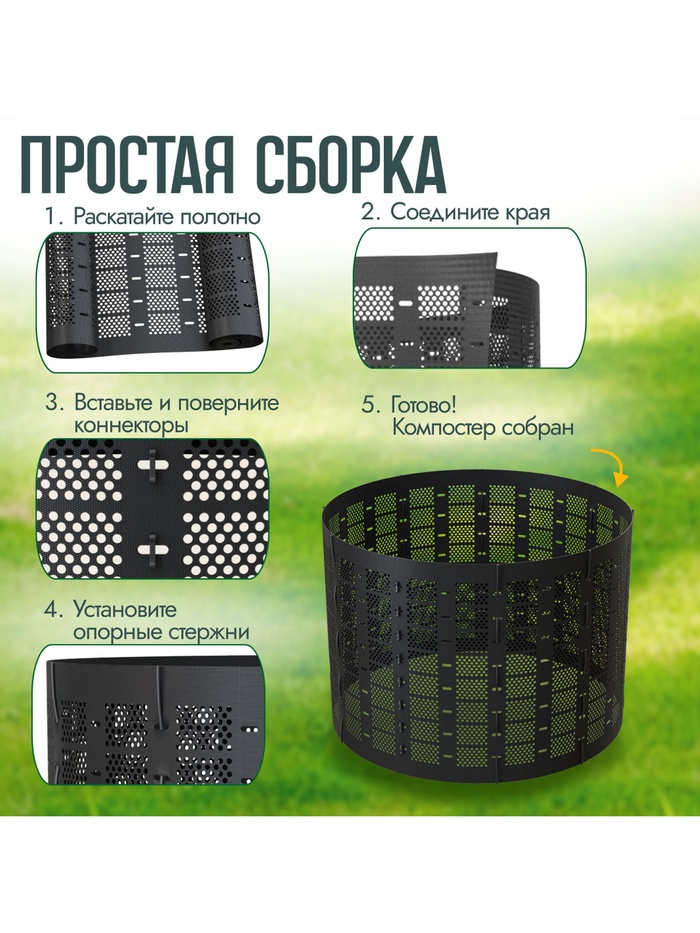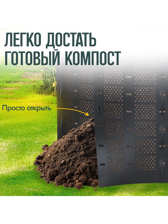Компостер садовый Piteco K11078, пластиковый, 780 л, 106×106×90 см, зелёный
