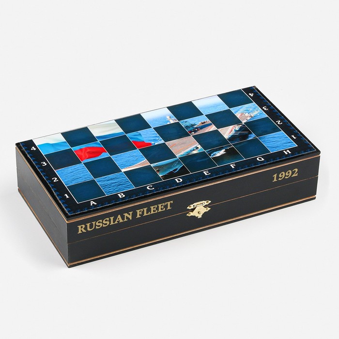 Шахматы «Русский флот», доска дерево 30×30 см, пешка h=5 см, король h=8.5 см