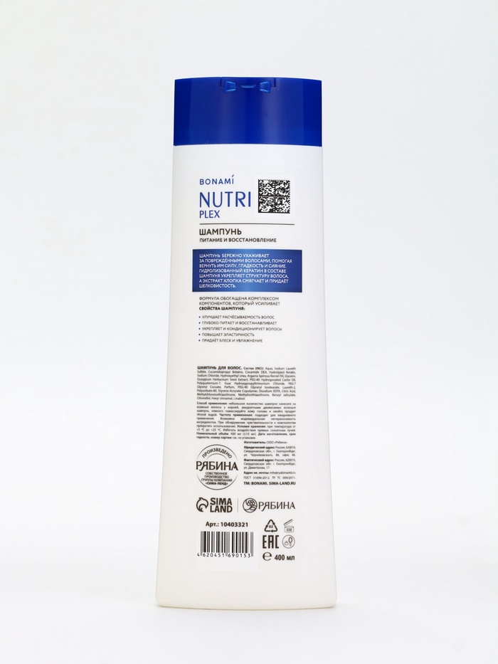 Технические характеристики Шампунь для волос «Питание и восстановление», 400 мл, BONAMI