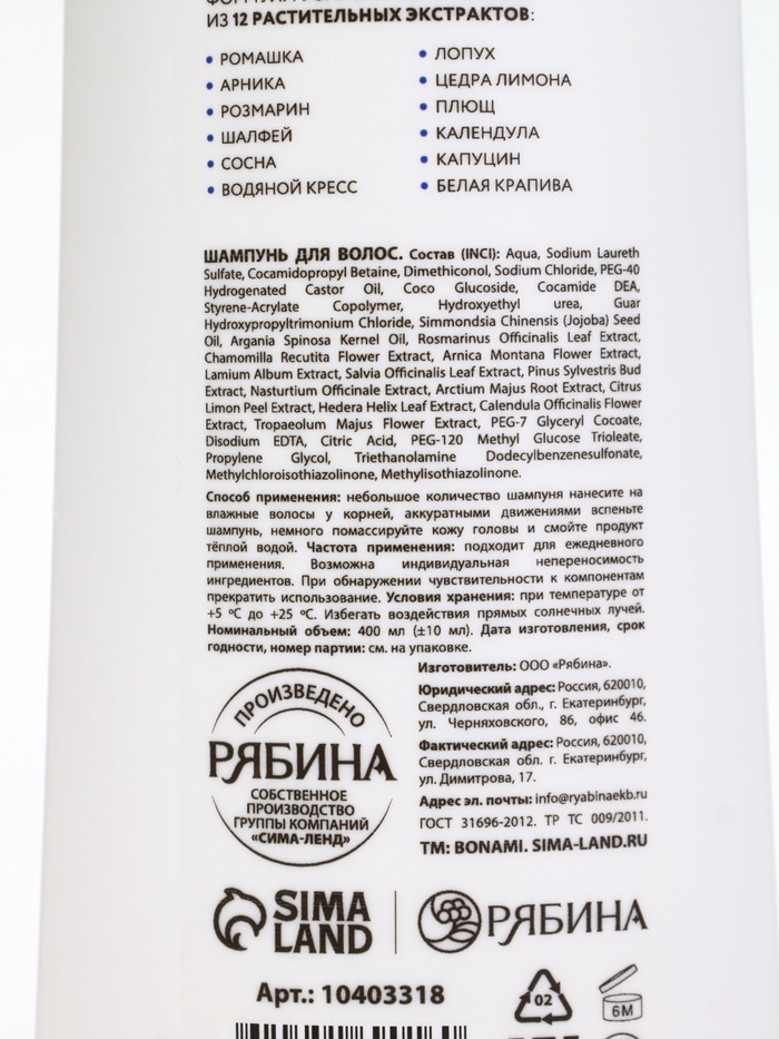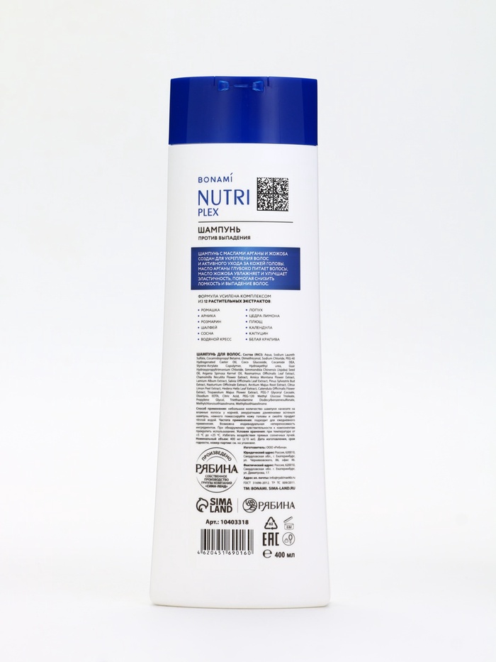 Технические характеристики Шампунь для волос «Против выпадения», 400 мл, BONAMI