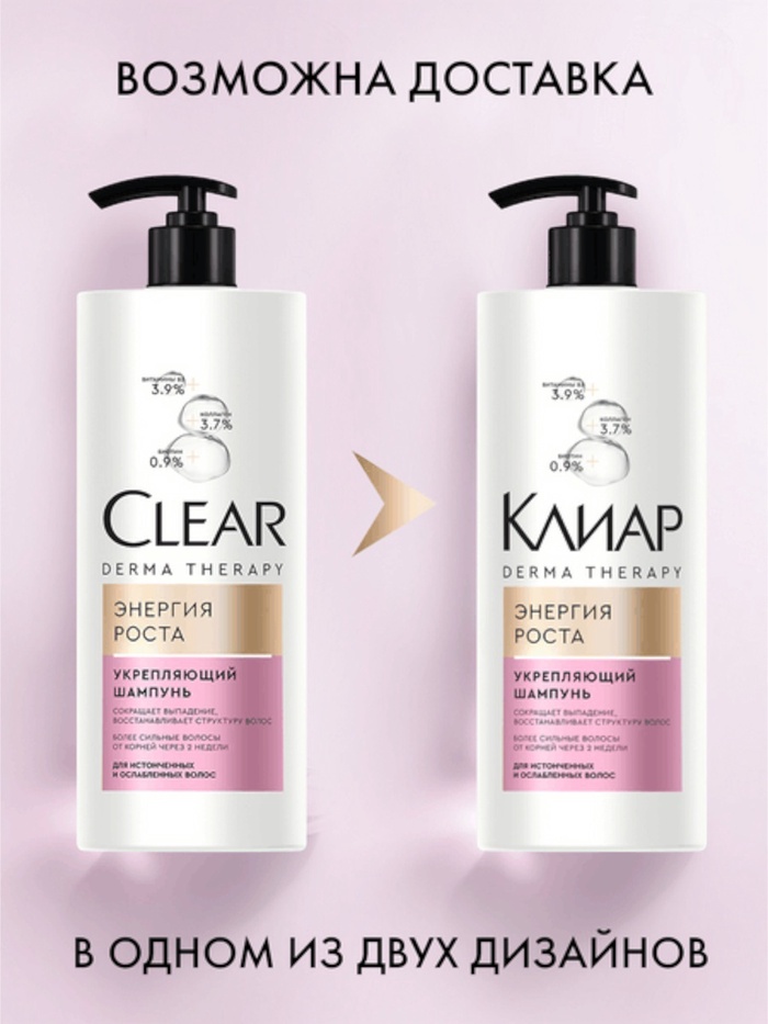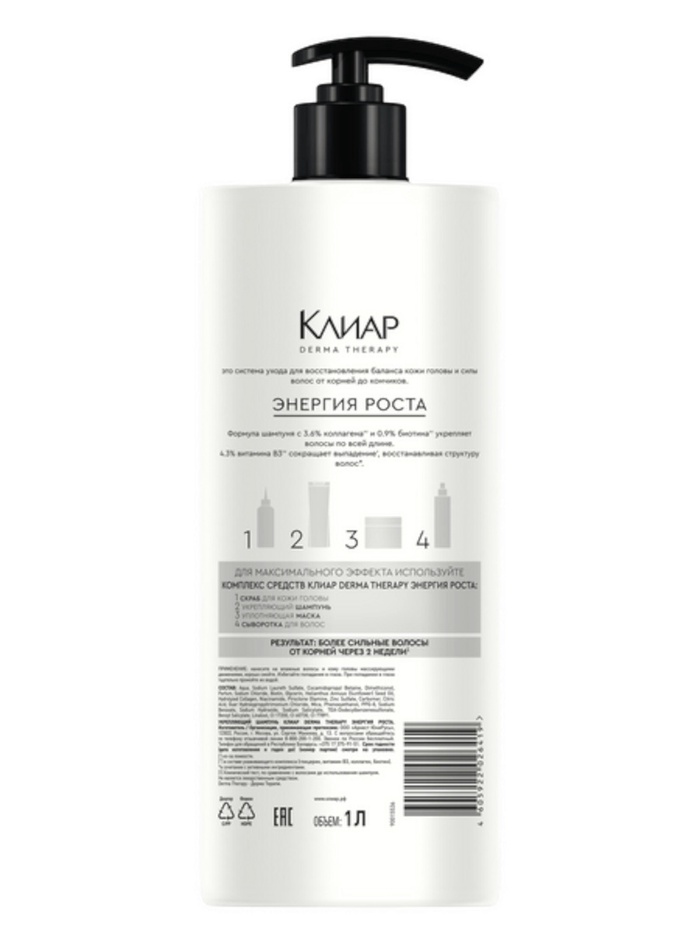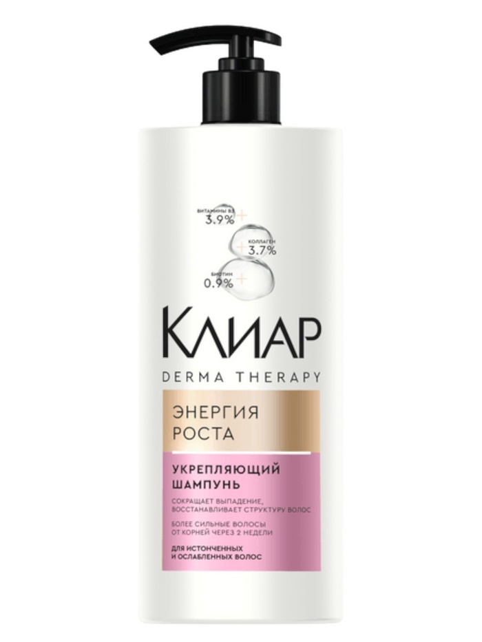 Клиар Derma Therapy Энергия роста — шампунь укрепляющий от выпадения волос с витамином B3, коллагеном и биотином.