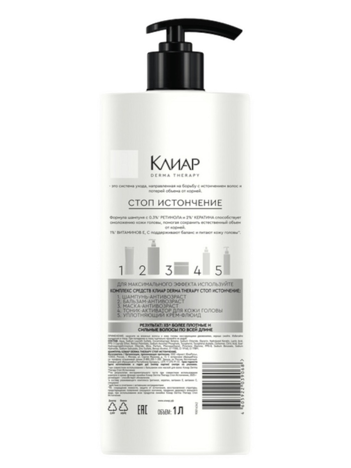 Шампунь для волос «Клиар», уплотняющий, стоп-истончение, 1000 мл
