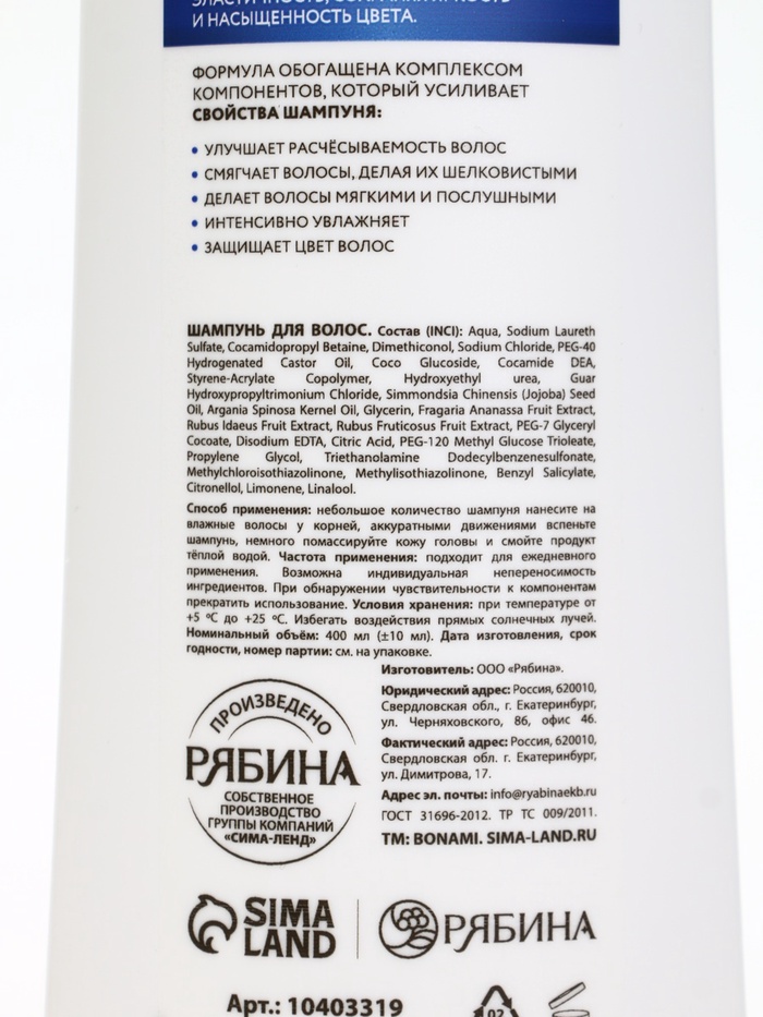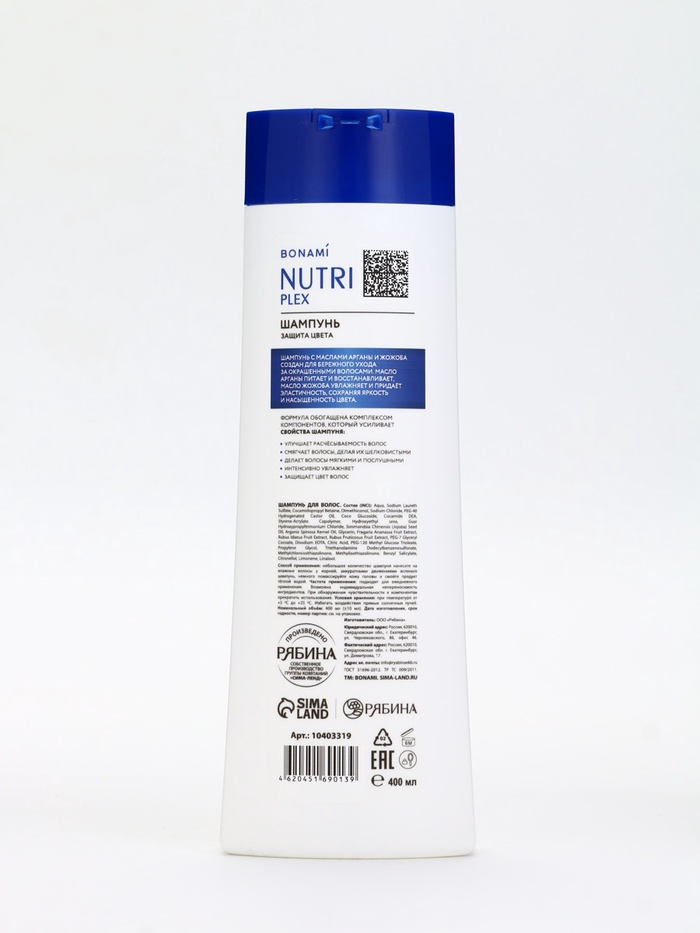 Технические характеристики Шампунь для волос «Защита цвета», 400 мл, BONAMI