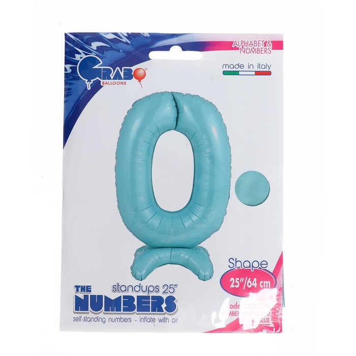 Технические характеристики Шар фольгированный 25" «Цифра 0», на подставке, для воздуха, цвет пастельно-голубой